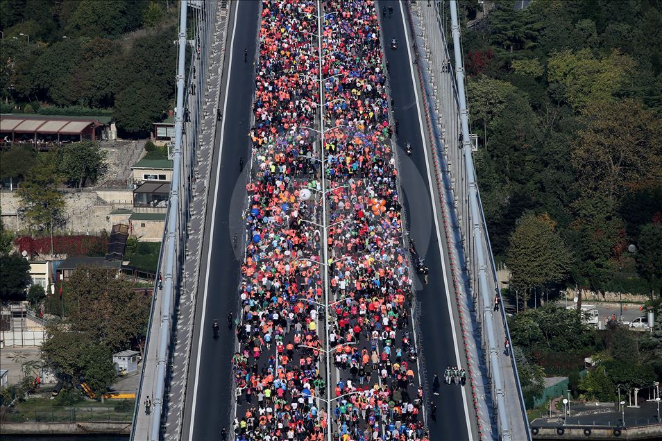 STAMBOLL (AA) - Në Stamboll u mbajt maratona e 41-të e cila zhvillohet me sponsor Vodafone nga ‘Spor İstanbul‘ kompani ndihmëse e Bashkisë së Madhe të Stambollit. Maratona startoi në pjesën e Anadollit në urën "Dëshmorët e 15 Korrikut" me sloganin "Stambolli është i yti, mos ndalo vrapo". ( Muhammed Enes Yıldırım - Anadolu Agency )Muhammed Enes Yıldırım