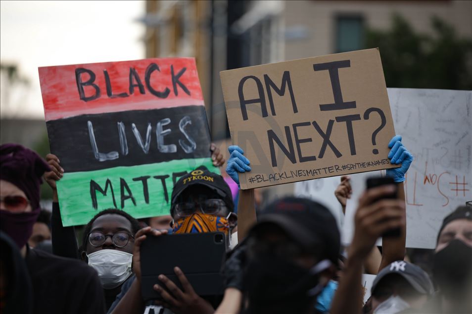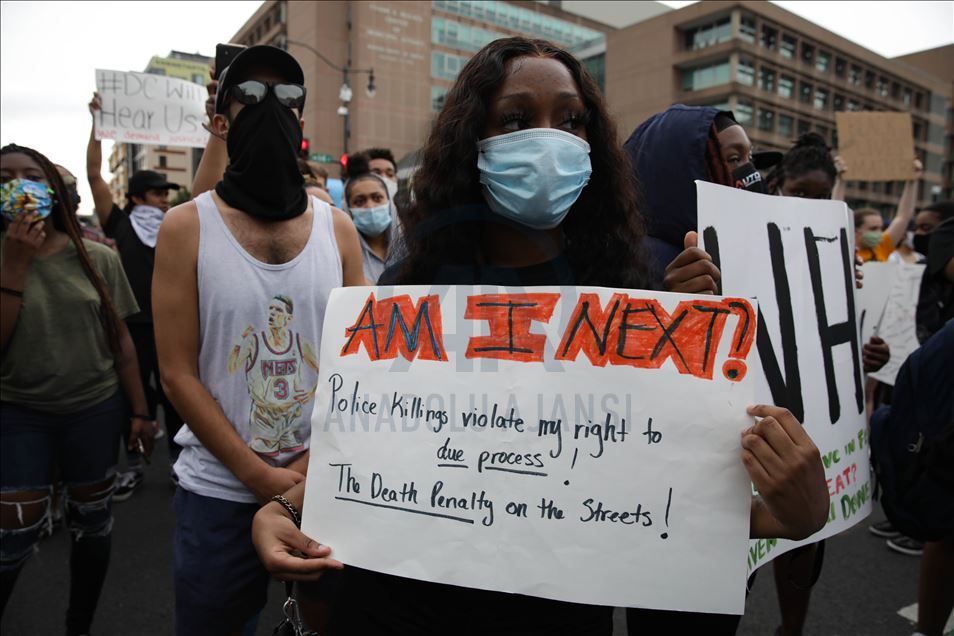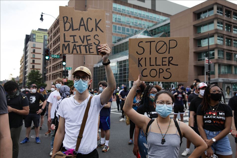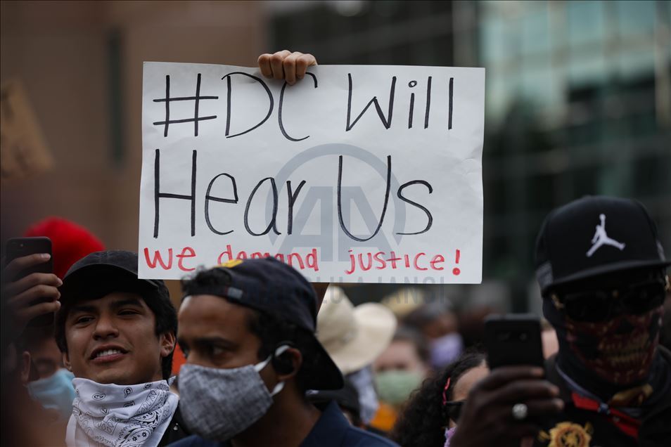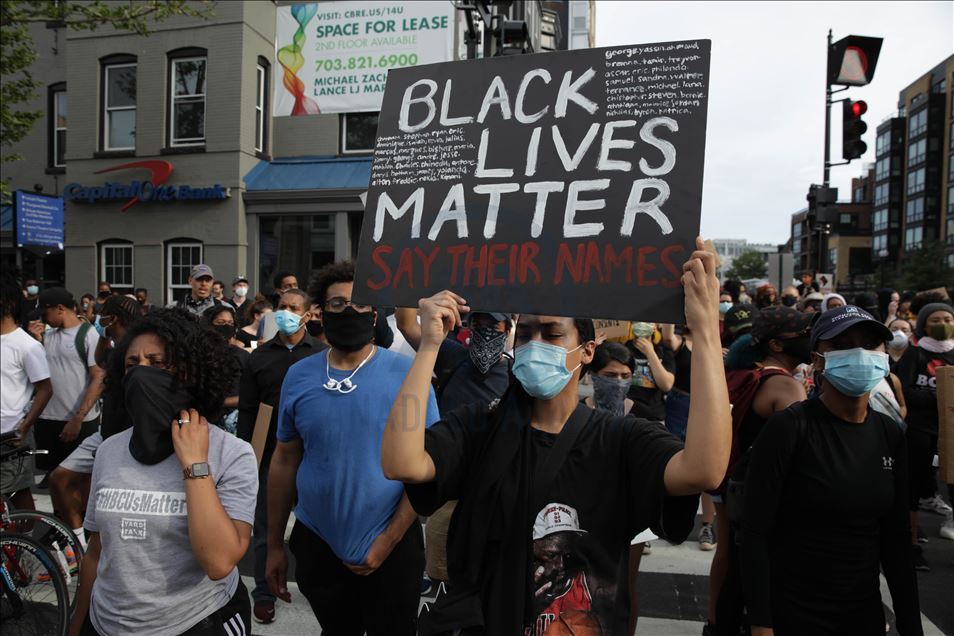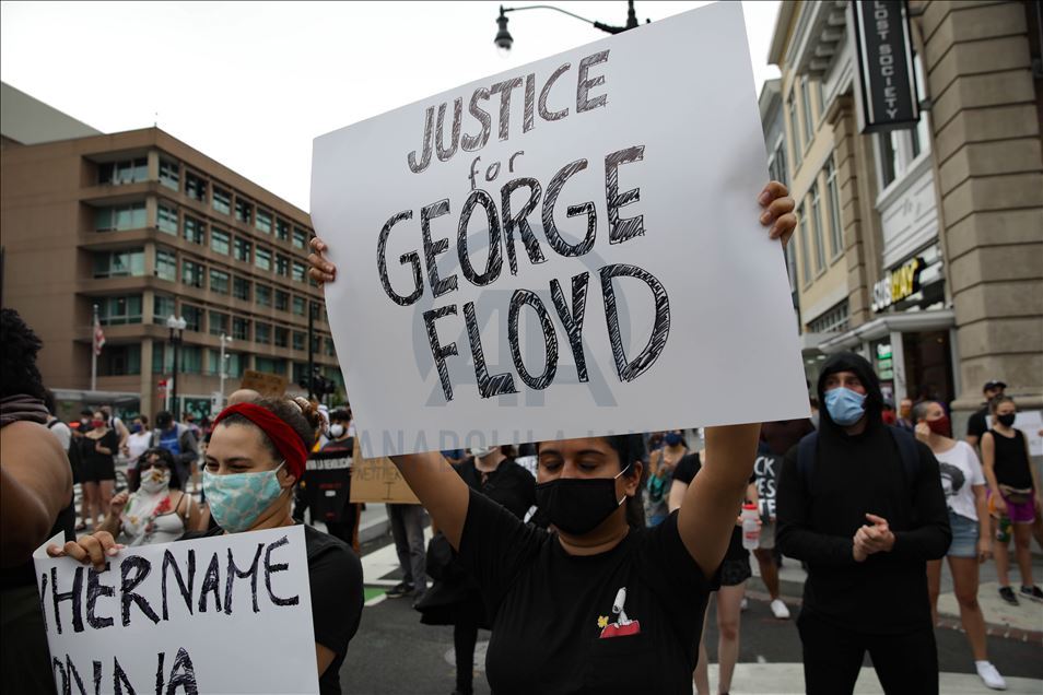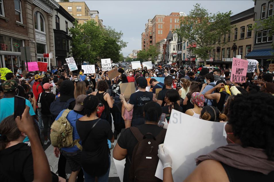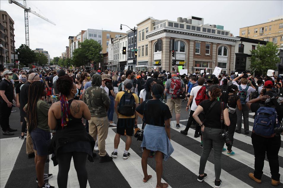 Qindra demonstrues u mblodhën në Washington të premten disa orë pas arrestimit të oficerit të bardhë të policisë të përfshirë në vdekjen e afro-amerikanit George Floyd në shtetin e Minnesotas. Protestuesit u mblodhën në rrugët "14" dhe "U" në veriperëndim të Washingtonit, pasi ish-oficeri i policisë Derek Chauvin u akuzua për vrasje të shkallës së tretë dhe vrasje me paparamendim të George Floyd, sipas Prokurorit të Qarkut Hennepin, Michael Freeman, në Minneapolis. ( Yasin Öztürk - Anadolu Agency )Yasin Öztürk