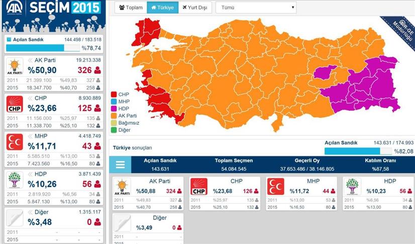 Në adresën e internetit "secim.aa.com.tr" ku do të tregohen në kohë reale rezultatet e zgjedhjeve të përgjithshme, gjithashtu rezultatet do të paraqiten të shoqëruara nën formën e hartave dhe të grafikëve.