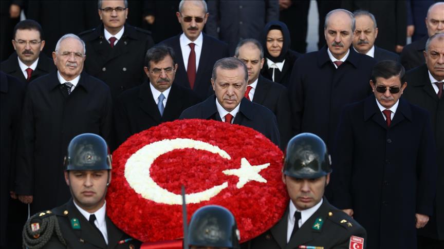 Pas intonimit të himnit kombëtar me atë rast presidenti Erdoğan vendosi kurora lulesh në mauzoleun e themeluesit të Republikës, Mustafa Kemal Ataturk.