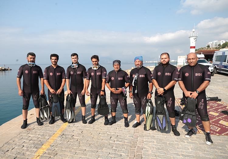 Kaleiçi Yat Limanı'nda 10 kişilik dalgıç ekibi tarafından deniz yüzeyinde 9x16 metre ölçülerinde Türk bayrağı açılmasının ardından, su altında çeşitli etkinlikler gerçekleştirildi.