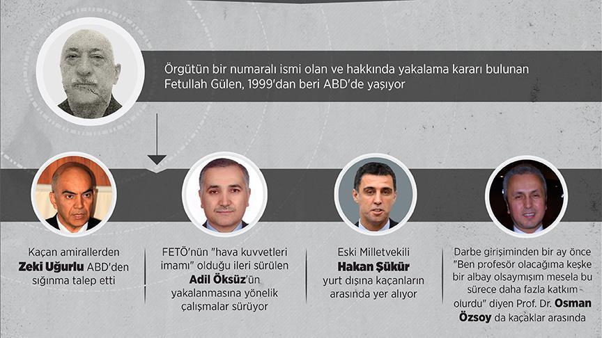 Fetullahçı Terör Örgütü'ne (FETÖ) yönelik yürütülen soruşturmalar ve açılan davalar sebebiyle yurt dışına kaçan şüphelilere, darbe girişimine katılan askerler de eklendi. Darbe girişiminden sonra Türk Silahlı Kuvvetlerinden (TSK) ihracına karar verilenler arasında bulunan eski Tümamiral Mustafa Zeki Uğurlu ABD'den sığınma talep ederken, FETÖ'nün "hava kuvvetleri imamı" olduğu ileri sürülen Adil Öksüz'ün yakalanmasına yönelik çalışmalar sürüyor. Cumhurbaşkanı Recep Tayyip Erdoğan da vatandaşlardan, FETÖ ile ilişkili olduğunu bildikleri isimleri emniyet ve savcılıklara bildirmelerini istedi.