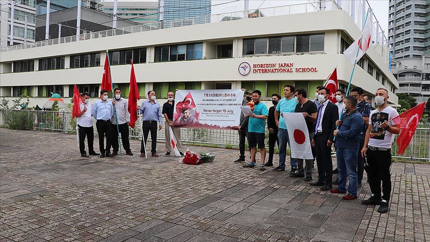 Türk Japon Kültür Ticari Yardımlaşma Dayanışma Derneği gönüllüleri ile Türk sivil toplumunun Japonya'daki temsilcileri, Yokohama kentinde Fetullahçı Terör Örgütü'ne (FETÖ) ait Horizon Japan International School'un (HJIS) önünde terör örgütünü protesto etti.