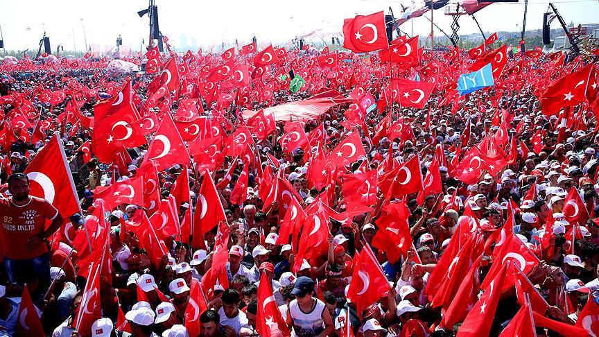 "Mevlana'nın dediği gibi 'Aynı dili konuşanlar değil, aynı duyguyu paylaşanlar anlaşır'. Bu duyguları paylaşmanın, bayrağımıza, ezanımıza, demokrasimize sahip çıkmanın mutluluğunu yaşıyoruz. İleride çok konuşulacak tarihi bir günü idrak ediyoruz. Tüm şehitlerimize dua ediyoruz."