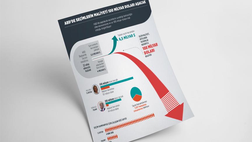 Washington merkezli Center for Responsive Policy'nin (Duyarlı Politika Merkezi) verilerine göre, başta Demokrat Hillary Clinton ve Cumhuriyetçi Donald Trump olmak üzere başkanlık için yarışan tüm isimlerin harcamaları yaklaşık 2,5 milyar dolara ulaştı. Ayrıca, 435 sandalyeli Temsilciler Meclisi üyeliği ve 34 Senatör koltuğu için yarışan yüzlerce adayın seçim kampanyaları için 4 trilyon dolardan fazla para harcandığı belirtiliyor.