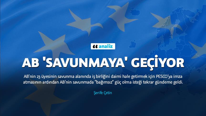 Avrupa Birliği'nin (AB) 23 üyesinin savunma alanında iş birliğini daimi hale getirmeyi öngören Yapılandırılmış Daimi İşbirliğinin (PESCO) kurulması için ortak bildiriyi imzalayarak somut adım atmasının ardından Avrupa'nın savunma alanında bağımsız güç olma çabası tekrar gündeme geldi.