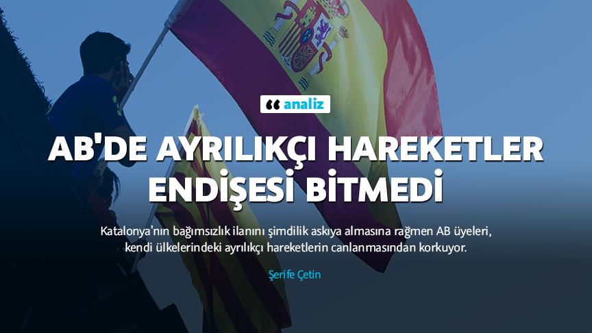 İspanya'nın doğusundaki Katalonya Özerk Yönetimi'nin bağımsızlık ilanını şimdilik askıya almasına rağmen diğer Avrupa Birliği (AB) ülkeleri içerisindeki ayrılıkçı hareketler, endişe yaratmaya devam ediyor.