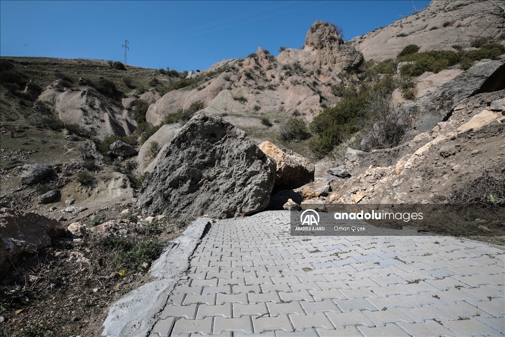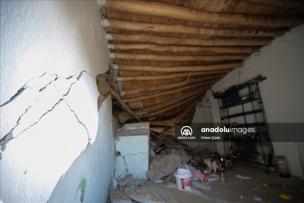 Tonlarca ağırlıktaki büyük kaya parçası, artçı sarsıntılarla hareket ederek Hacı Bulgur'a ait tek katlı eve çarparak ortadan ikiye ayrıldı. Kayanın çarpmasıyla ikamette hasar oluşurken, eve çıkan yol da düşen parçalar nedeniyle kapandı.