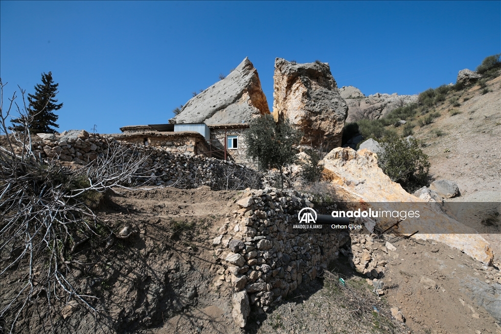 Evin sahibi Hacı Bulgur (40), AA muhabirine, depremlerin etkisiyle dev kaya parçasının yerinden ayrıldığını söyledi.