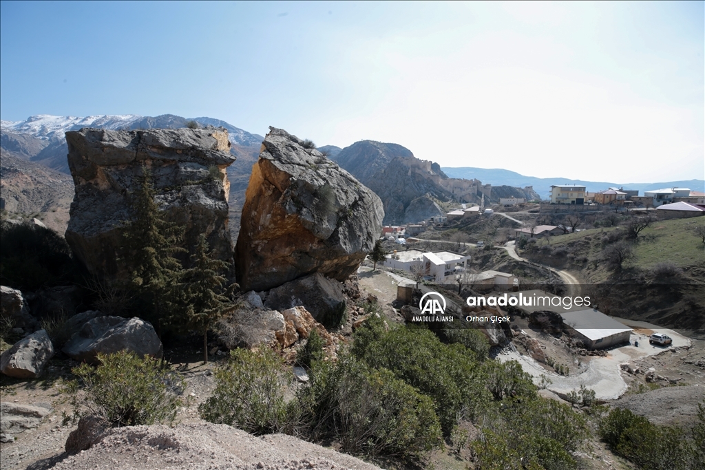 Merkez üssü Kahramanmaraş'ın Pazarcık ve Elbistan ilçeleri olan 7,7 ve 7,6 büyüklüğündeki 6 Şubat'taki depremler sonrası Adıyaman'ın Kahta ilçesine bağlı Eski Kahta köyünde ilginç görüntü oluştu.