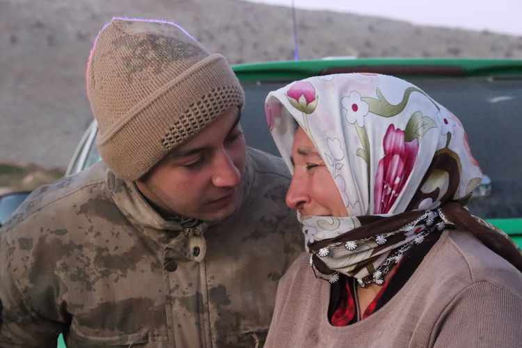 "Birican" ismini verdiği ineğine kavuştuğu için duygusal anlar yaşayan Birgül Tuncay, jandarma ekiplerince teselli edildi.