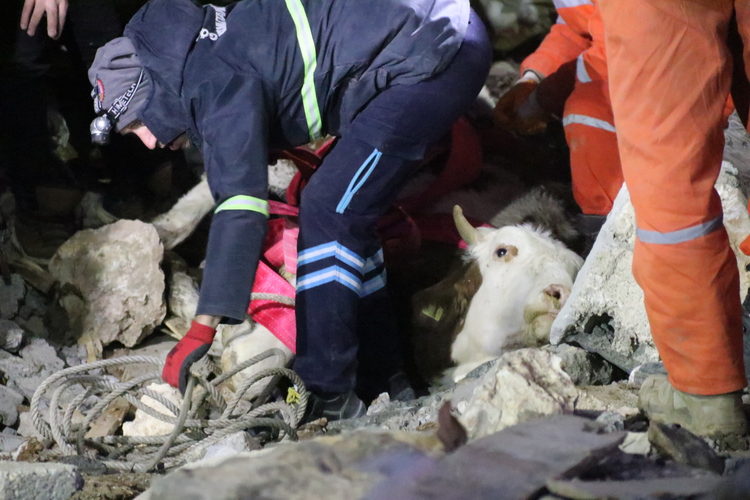 Kirişci, paylaşımında, "Adıyaman'da yetiştiricimiz Birgül Tuncay'ın enkaz altındaki ineği Bircan'ı ekiplerimizin ve diğer kurumlarımızın yoğun uğraşları sonucunda sağ salim kurtardık. Bir canı daha kurtarmak için çalışan herkese teşekkürler." ifadesini kullandı.