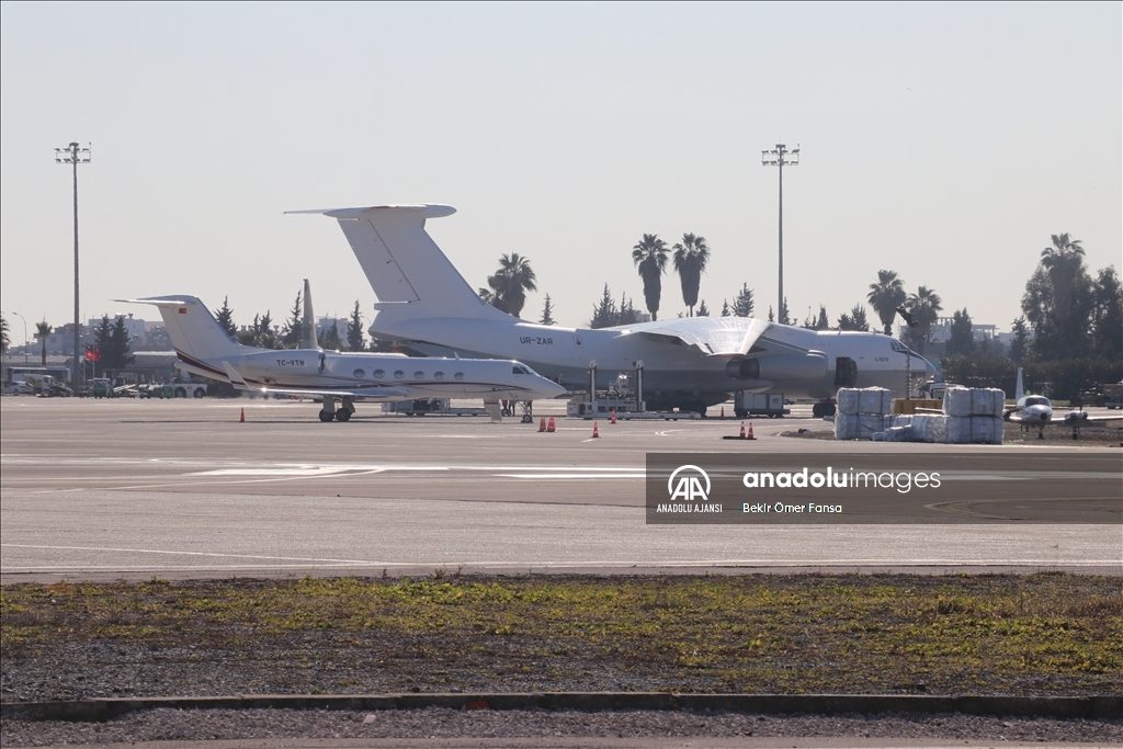 "Asrın felaketi" olarak nitelendirilen Kahramanmaraş merkezli depremler nedeniyle yardım faaliyetlerinin hızlı lojistik ve ulaşım üssü konumuna gelen Adana Havalimanı'ndaki yoğunluk devam ediyor.