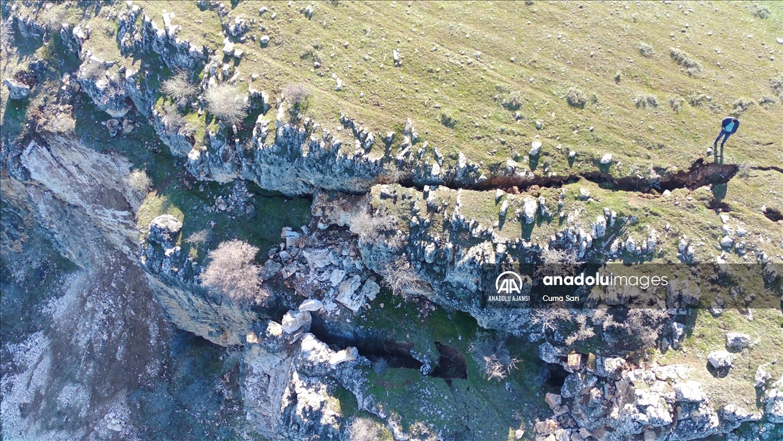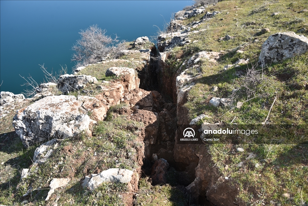 Pazarcık ve Elbistan ilçelerinde 6 Şubat'ta meydana gelen 7,7 ve 7,6 büyüklüğündeki depremler sırasında Şanlıurfa'nın Siverek ilçesinde Fırat Nehri kıyısında oluşan yarıklar, AA ekibi tarafından görüntülendi.