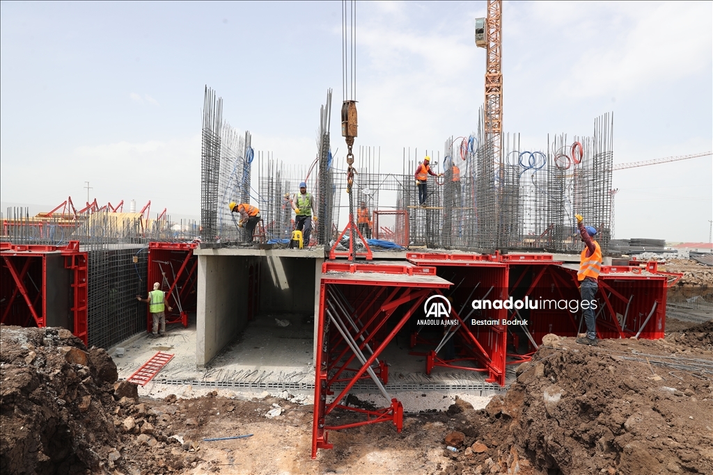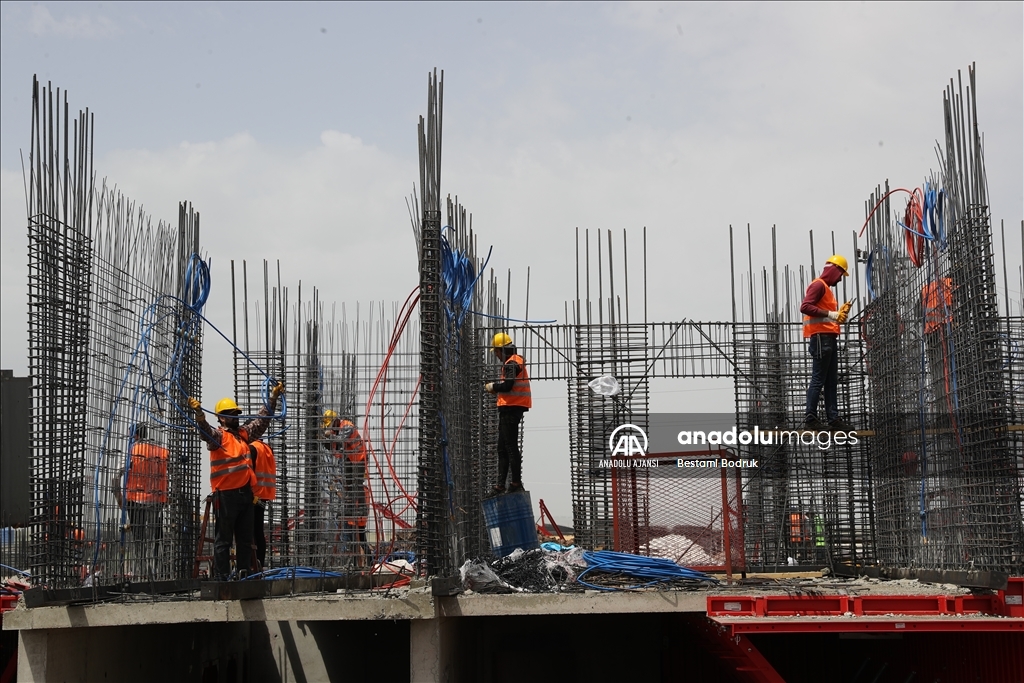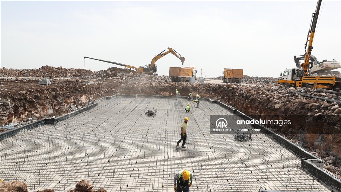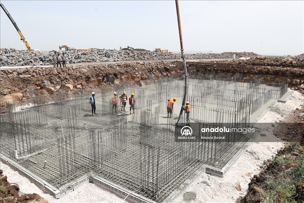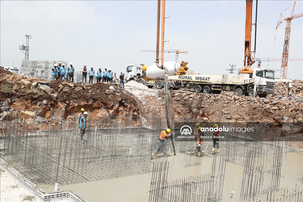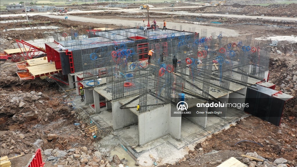 Kahramanmaraş merkezli 6 Şubat'taki depremlerden etkilenen Diyarbakır'da Toplu Konut İdaresi Başkanlığı (TOKİ) tarafından temeli atılan binaların yapımı sürüyor.