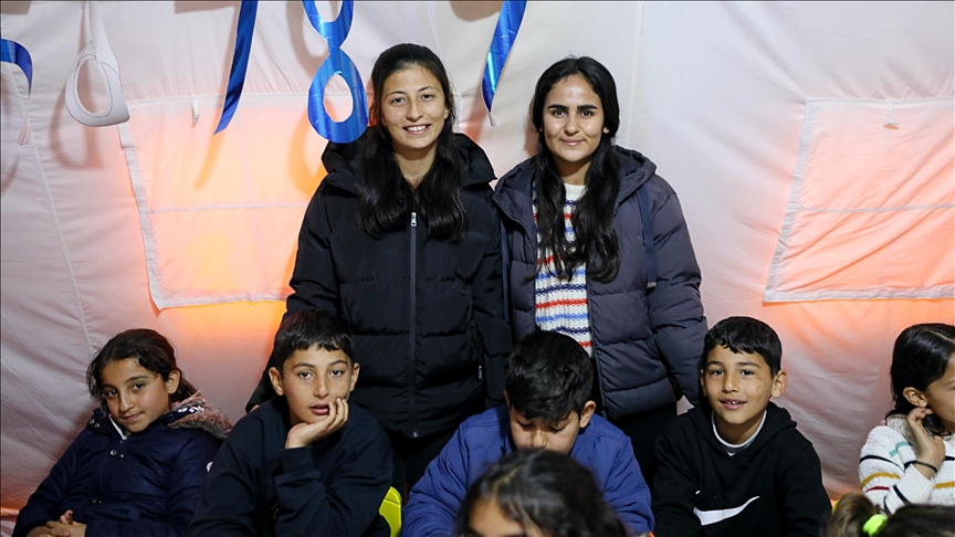 Kahramanmaraş merkezli 6 Şubat'taki depremlerden etkilenen Adıyaman'da enkaz altından kurtarılan üniversite mezunu iki kız arkadaş, yaşadıkları beldede kurulan çadır kentte çocuklarla zaman geçiriyor, kitap okuyor, İngilizce öğretiyor, gönüllü eğitim veriyorlar.