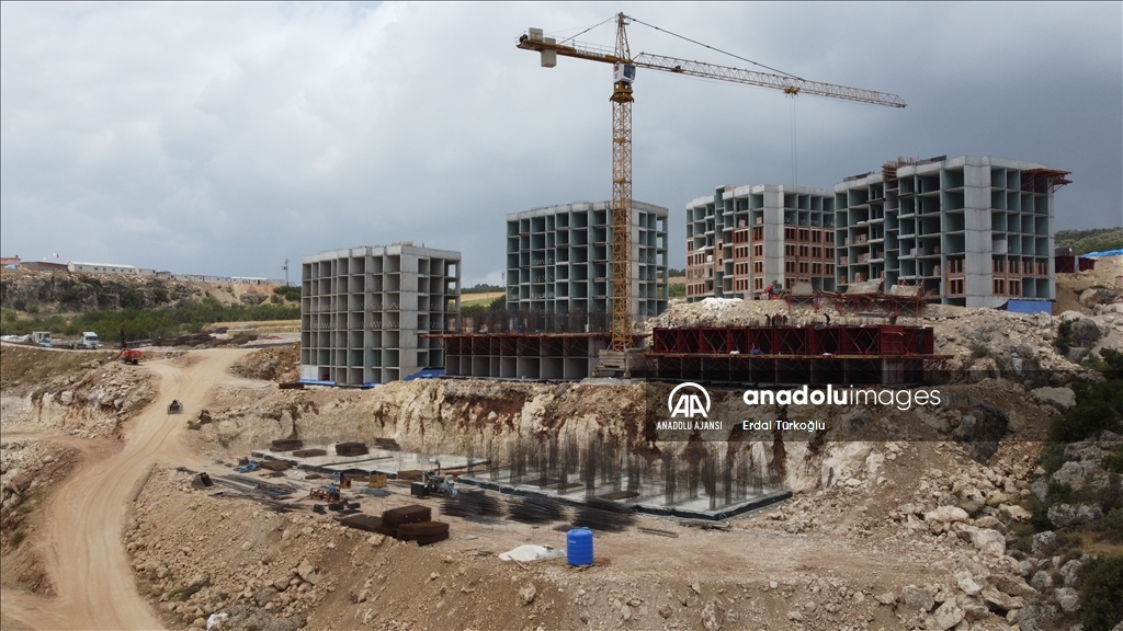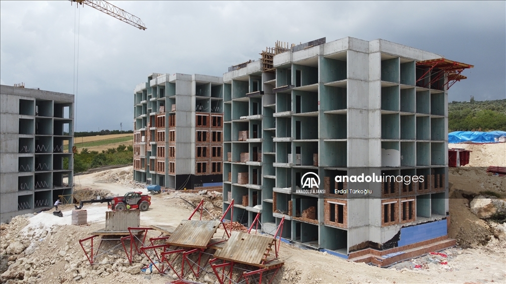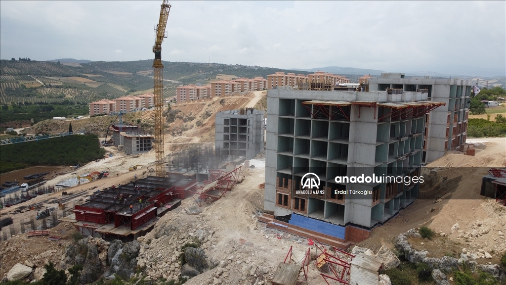 Hatay'da depremzedeler için yapılan kalıcı konutların 4 blokunun kaba inşaatı bitti