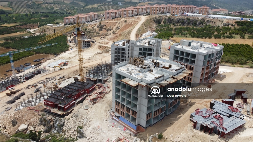 İlçede, depremlerden sonra temeli atılan 364 konut yer alacak 20 bloktan 4'ünün kaba inşaatı tamamlandı.