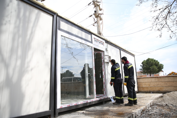Kahramanmaraş'ın Türkoğlu ilçesinde iş yerleri yıkılan veya ağır hasar gören esnaf için toplam 140 prefabrik iş yerinden oluşan çarşılar kuruluyor.