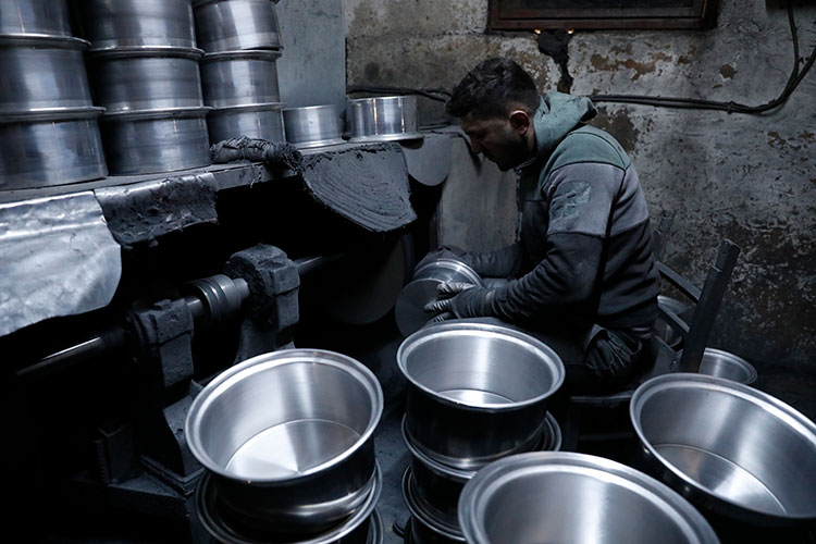 Türkiye'deki metal mutfak eşyalarının yaklaşık yüzde 90'ının üretildiği Kahramanmaraş'ta, depremden etkilenen esnafın üretimi her geçen gün artıyor.