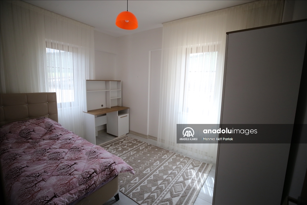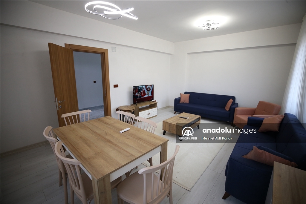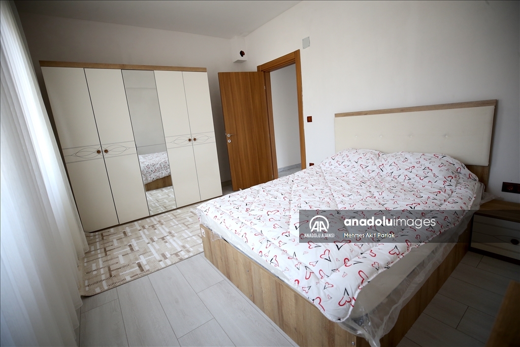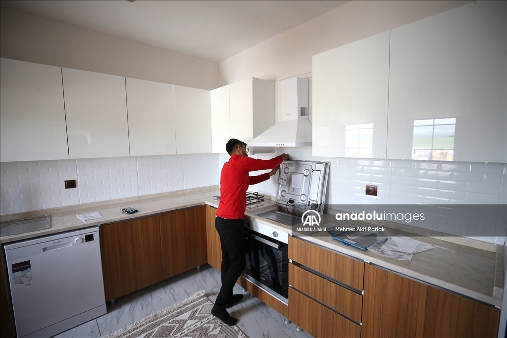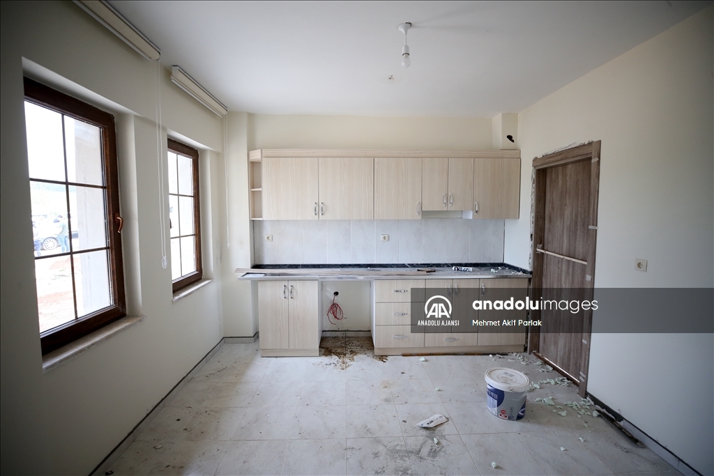 İnşaatı tamamlanan evlere kapı, pencere, duşa kabin takıldı, mutfak dolabı ve tezgah monte edildi.