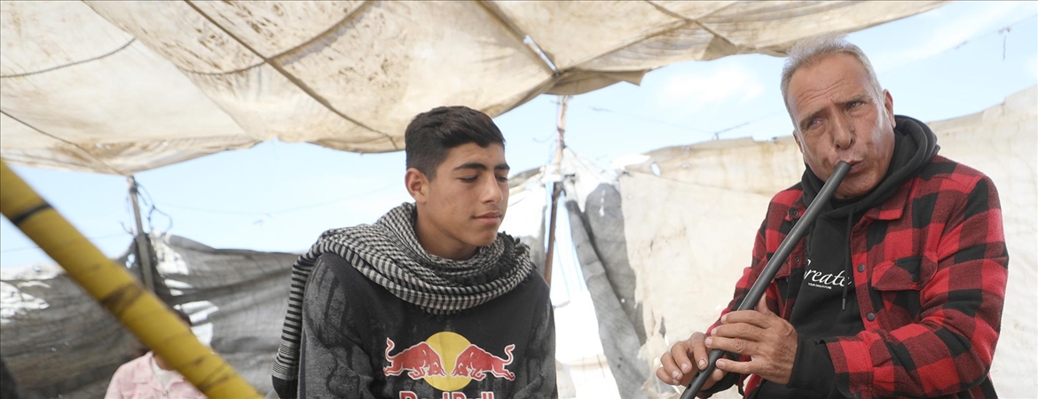 Filistinli müzik öğretmeni Ahmed Ebu Emşa (45) da iptidai şartlara rağmen bölgedeki gençler ile çocukları müzikle tanıştırıyor. Ebu Emşa, çadırdan oluşan derslikte nota ve ses eğitiminin yanı sıra gitar, keman, ney ve darbuka dersleri veriyor.