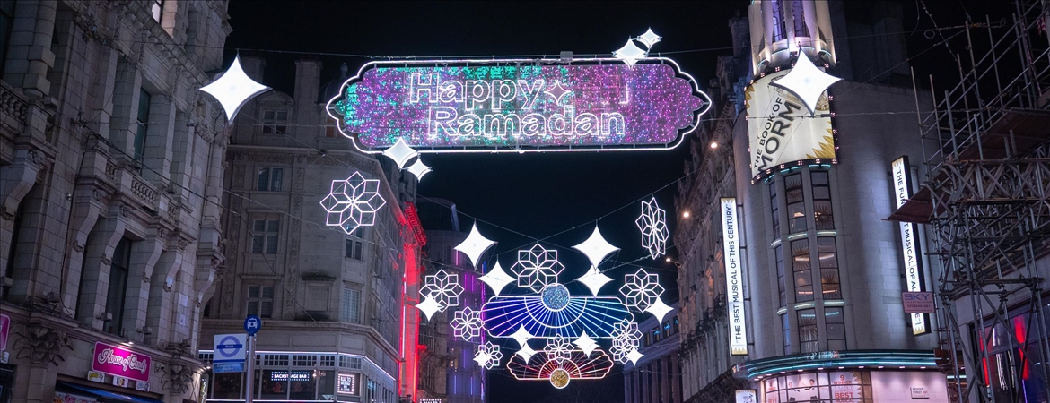 Başkentin kalbi konumundaki Piccadilly Circus Kavşağı'ndan Leicester Meydanı'na uzanan Coventry Caddesi, bu yıl da ramazan ayı için süslendi.