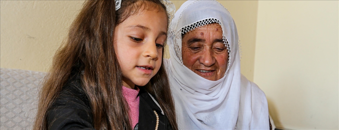 Erzurum'un Karayazı ilçesinde yaşayan 70 yaşındaki Perizade Sürmeli, ilkokul birinci sınıf öğrencisi torunu Ecrin Ada Sürmeli'nin okulda öğrendiklerini evde kendisine anlatması sayesinde okuma yazma öğreniyor.