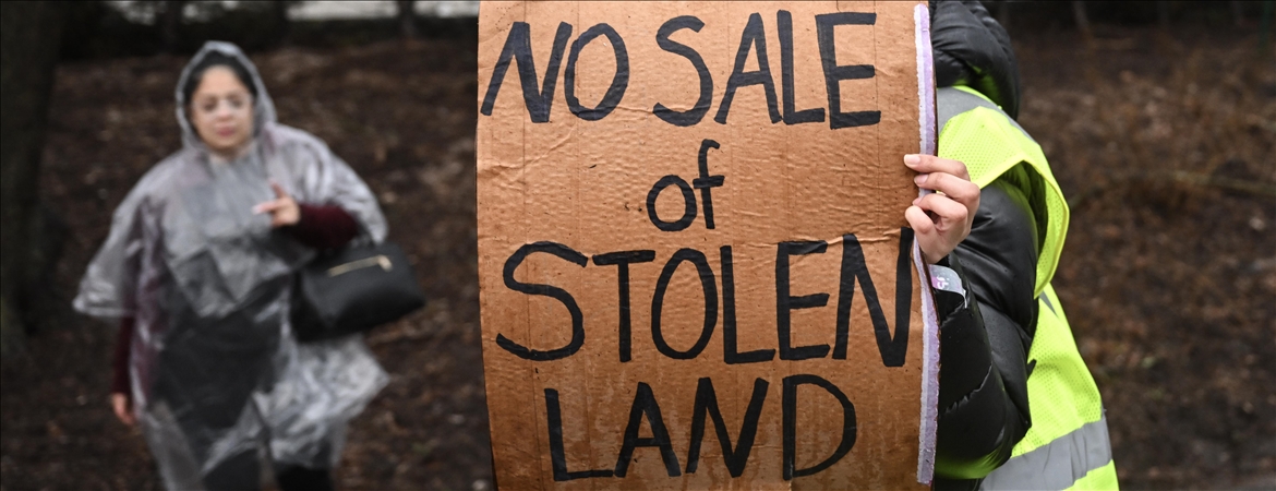 Göstericiler “Çalınmış toprakları satamazsınız", “Bu toprak hırsızlığıdır”, “Çalınmış topraklar üzerinde iş yapmayın” pankartları taşıması da dikkati çekti.