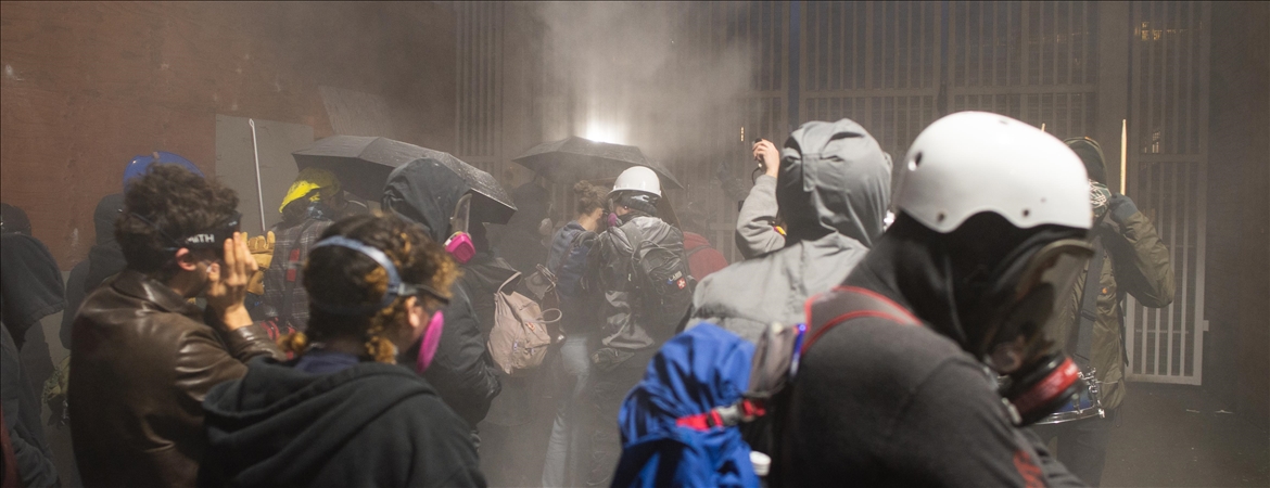ABD'nin Portland kentinde, göçmenlik uygulamalarını protesto etmek amacıyla Göçmenlik ve Gümrük Muhafaza (ICE) binası önünde toplanan kalabalığa göz yaşartıcı gazla müdahale edildi.
