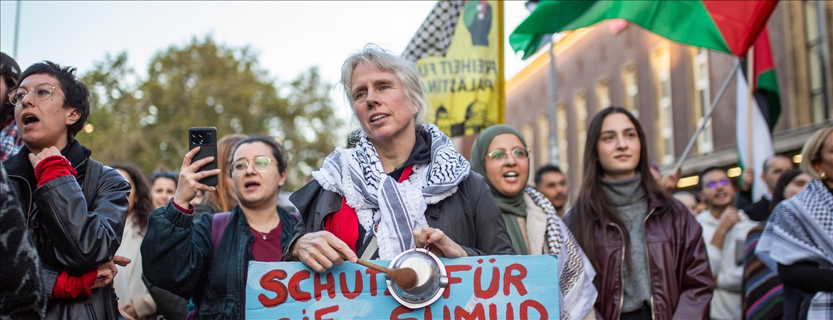 Ayrıca "Nehirden denize", "Tek devlet vardır-Filistin 48" ve Yalla, yalla, İntifada" sloganlarının gösterinin başında okunmasına ve daha sonra kullanılmasının yasaklandığına işaret edilen açıklamada, gösteriyi organize edenlerin bu yasaklara karşı yürütmeyi durdurma başvurusunun, Düsseldorf İdare Mahkemesince reddedildiği ifade edildi.