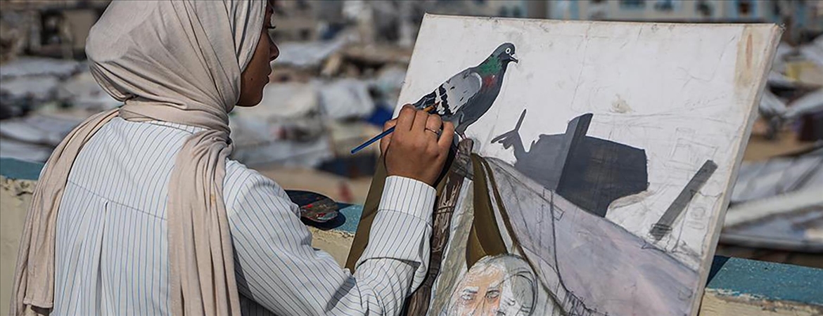 Gazzeli ressamların yaptığı eserler, yaşanan toplumsal acılara ışık tutuyor. Ressamlar, bir parçası oldukları toplumun sesini fırçalarıyla dünyaya duyurmaya çalışıyor.