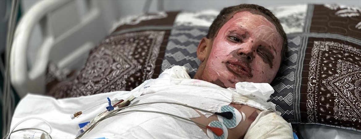 Gazze'nin güneyindeki Han Yunus kentinde çadırda ailesiyle yaşayan 11 yaşındaki Mecd Ebu Habib'in vücudunun büyük kısmı, okuldan dönerken İsrail'in bıraktığı mühimmatın patlaması sonucu yandı.