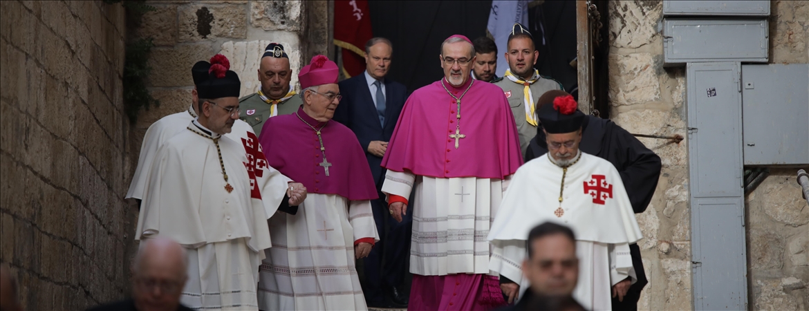 Kudüs Latin Patrikhanesi ve Kutsal Topraklar Muhafızlığından yapılan ortak açıklamada, "Palmiye Pazarı" ayinini yönetmek üzere Kıyamet Kilisesi'ne gelen Pizzaballa ve Ielpo'ya İsrail polisinin engel olduğu vurgulandı.