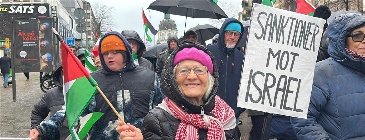 "Gazze'de çocuklar öldürülüyor", "Okullar ve hastaneler bombalanıyor", "Lübnan'a saldırılar durdurulsun" ve "Gıda kıtlığına son verilsin" yazılı pankartlar taşıyan topluluk, İsrail'in Gazze'ye yönelik soykırımı ve Lübnan'a yapılan hava saldırılarını durdurmasını ve İsveç'in İsrail'e silah satışına son vermesini talep etti.