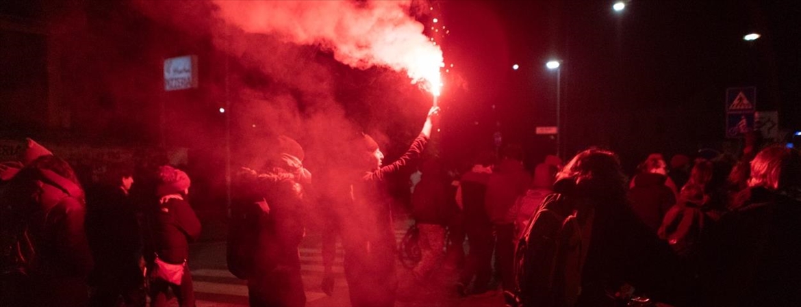 Protestocular sık sık havai fişek atıp meşaleler yakarken, "Özgür Gazze", "Filistin'e özgürlük" şeklinde sloganlar attı.