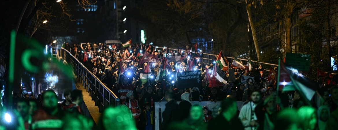 Akşam namazı sonrası Kocatepe Camisi'nin avlusunda toplanan binlerce kişi, buradan sloganlar ve tekbirler eşliğinde Sıhhiye Meydanı'na yürüyüş yaptı.