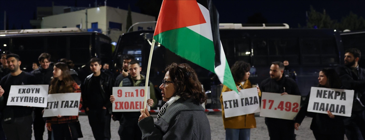 Yunanistan Konteyner Taşımacılığı İşçileri Birliği (ENEDEP), Yunanistan Komünist Partisine (KKE) bağlı İşçi Sendikası (PAME) ve Pire İşçileri Birliği'nin ortak çağrısıyla düzenlenen eyleme, Gazze'ye destek vermek isteyen işçi ve sendikalıların yanı sıra öğrenciler katıldı.