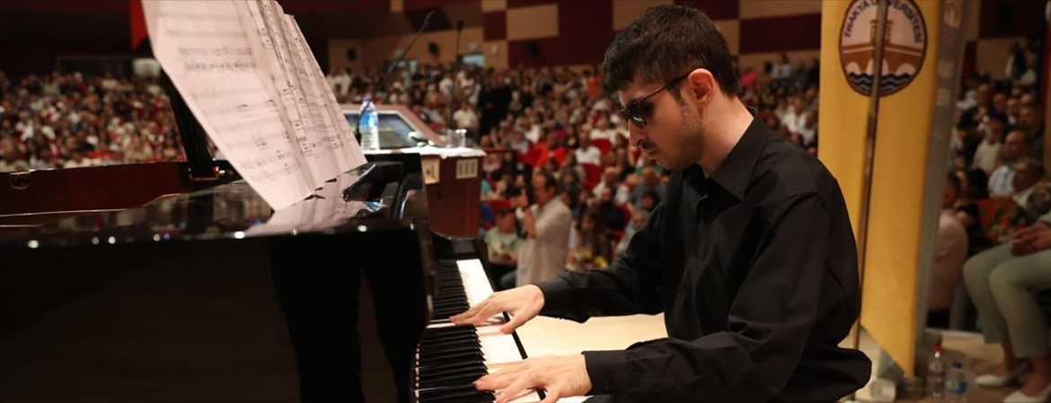 Balkan Kongre Merkezi'nde düzenlenen Eğitim Fakültesi Mezuniyet Töreni'nde sahneye çıkan Mikyas, Öğretmen Marşı'nı seslendiren fakülte korosuna piyanosuyla eşlik etti.