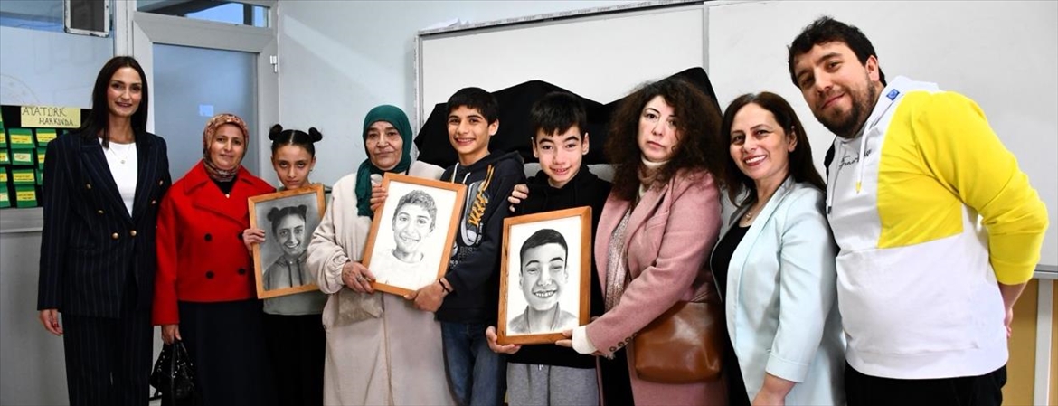 Türkiye'nin farklı kentlerinden ve Portekiz'den 20 gönüllü ressam, Özel Eğitim Ortaokulu ve Meslek Okulundaki özel gereksinimli öğrencilerin karakalem portrelerini çizdi.