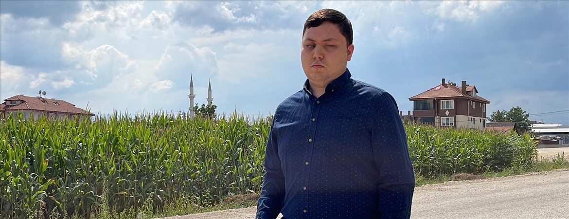 26 yaşındaki Topaç, anne ve babasının kan uyuşmazlığı nedeniyle yaşadığı rahatsızlık sonucu henüz 2 aylıkken görme yetisini yüzde 90 kaybetti.