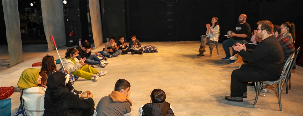 Ali İhsan Arslan Görme Engelliler İlk ve Ortaokulu'nda eğitim gören öğrenciler, Gülen İpek Abalı'nın kaleme aldığı "Çocuk Ülkesi" adlı oyunu sesli betimlemeyle dinledi.