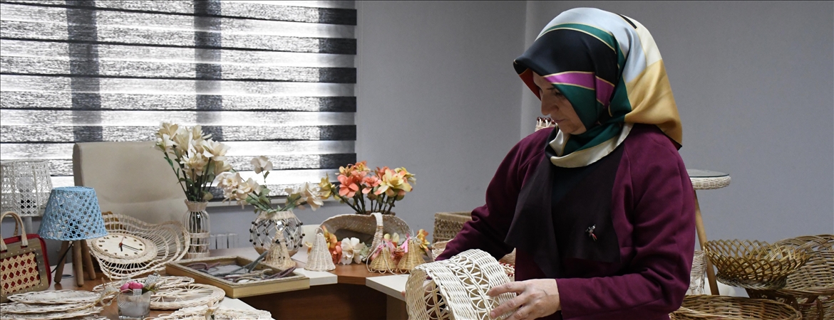 Düzce'de yaşayan Kültür ve Turizm Bakanlığı Somut Olmayan Kültürel Miras Taşıyıcısı Nükhet Acar, hasır dokuma alanında açtığı kurslarda doğada yetişen bitkileri dekoratif ürünler ile mutfak araç ve gereçlerine dönüştürmeyi öğretiyor.