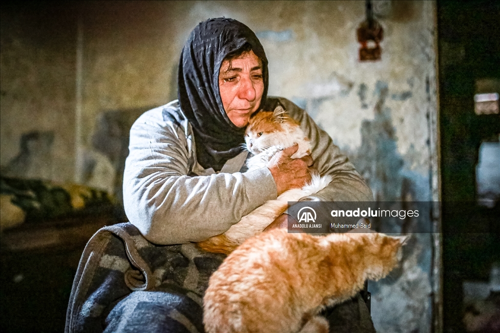 İdlib'de savaş mağduru kadın kedilerinden vazgeçmiyor