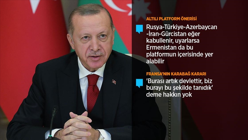 Azerbaycan Cumhurbaşkanı İlham Aliyev'in ifade ettiği platform konusunu kendisinin de çok önemsediğini dile getiren Erdoğan, Aliyev'in "Gerekirse altılı bir platform da oluşturabiliriz." dediğini anımsattı.