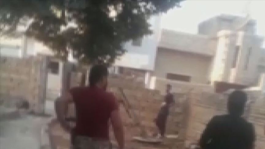 Videoda, Kürtçenin Kamışlı ağzını kullanan teröristlerin sivillere ait bir evin avlusuna yuvalandığı ve buradan Türkiye’ye havan topu atışı yaptığı görülüyor.