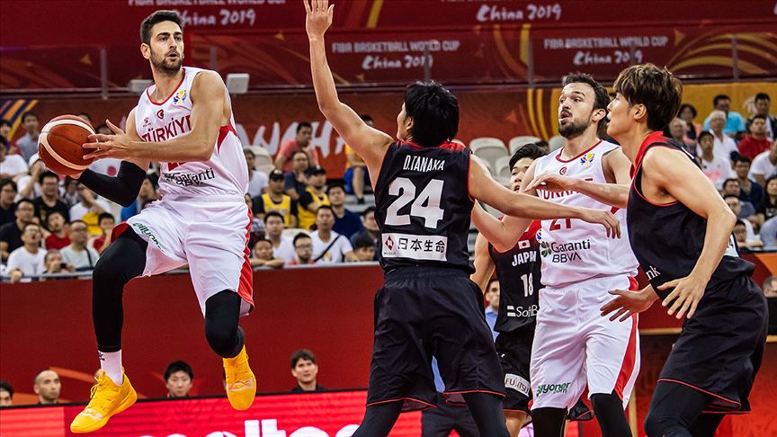 A Milli Erkek Basketbol Takımı, Çin'in ev sahipliğinde gerçekleştirilen 2019 FIBA Dünya Kupası E Grubu'nda Şanghay Oriental Spor Merkezi'nde Japonya ile karşı karşıya geldi. ( Zhong Zhenbin - Anadolu Ajansı )