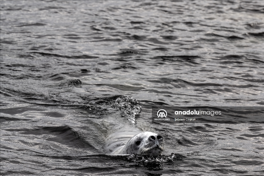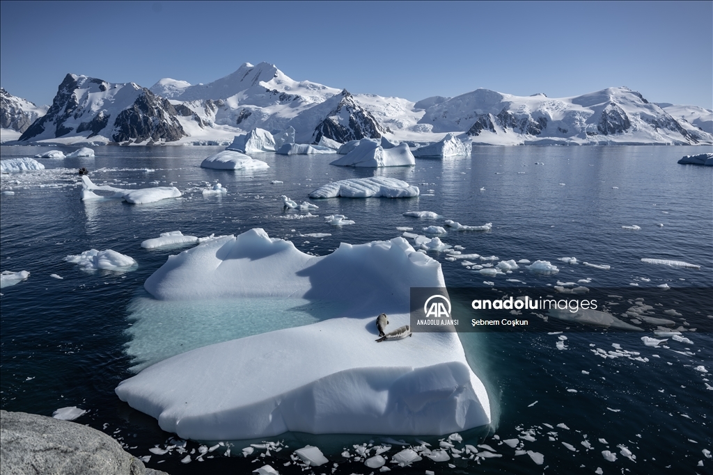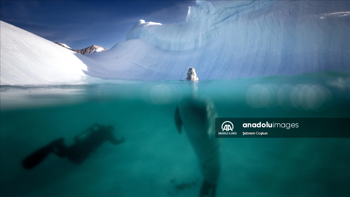 Sefer katılımcıları 7. Ulusal Antarktika Bilim Seferi Çevre Zabiti Dr. Burak Karacık ve Anadolu Ajansı Foto Muhabiri Şebnem Coşkun, Türk Bilim Kampı'nın bulunduğu Horseshoe Adası'nda yer alan ve buzuldan kopan bir buzdağına farkındalık dalışı gerçekleştirdi.
