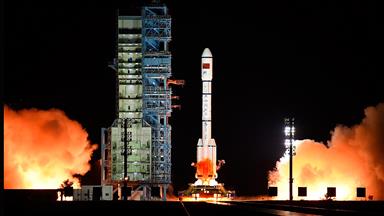 Çinli astronotlar Cing Haypıng ve Çın Dong, "özel muhabir" sıfatıyla yörüngede bulunan Tiengong-2 (Gök Saray-2) uzay mekiğinden haber sundu.