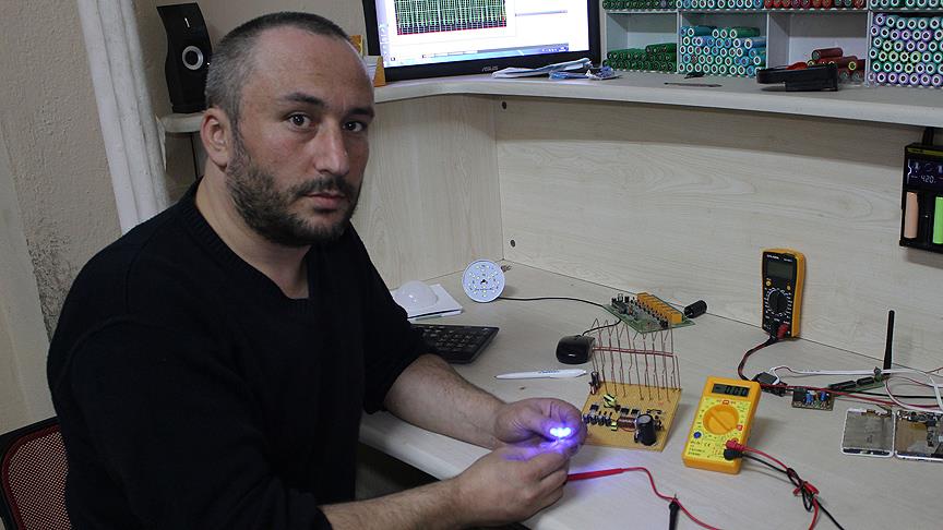 Kütahya'nın Tavşanlı ilçesinde, 35 yaşındaki elektronikçi, havadaki elektromanyetik dalgaları elektriğe dönüştüren cihaz geliştirdi.